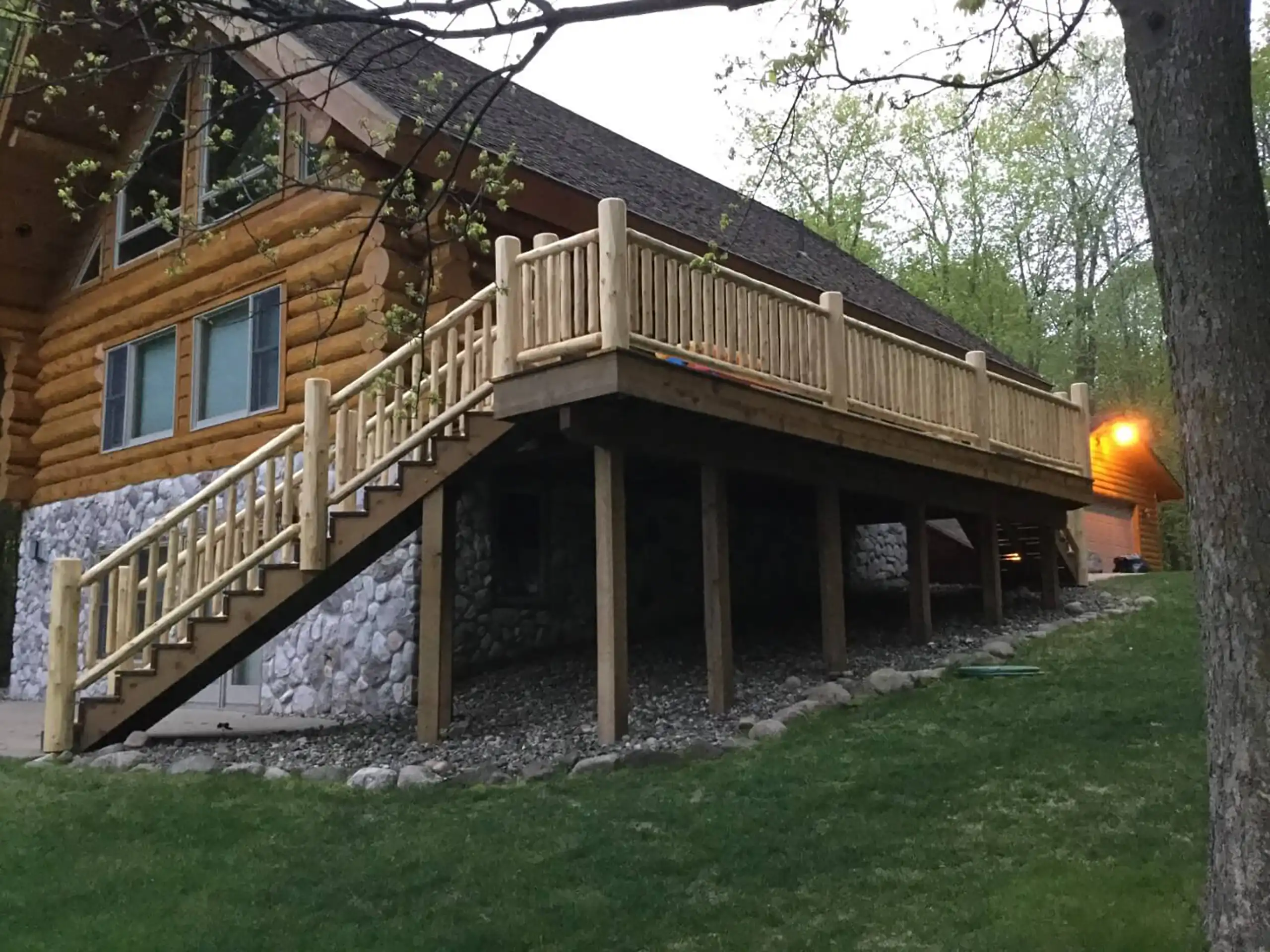One of the standout features of our deck construction is the use of white cedar log railings, which offer both a natural aesthetic and superior durability. White cedar is 10 times more resistant to rot and insects than typical wood, ensuring your deck railings will last for decades without the need for constant maintenance. We also specialize in log support replacements, providing lasting stability for older decks by replacing worn-out supports with more durable materials.