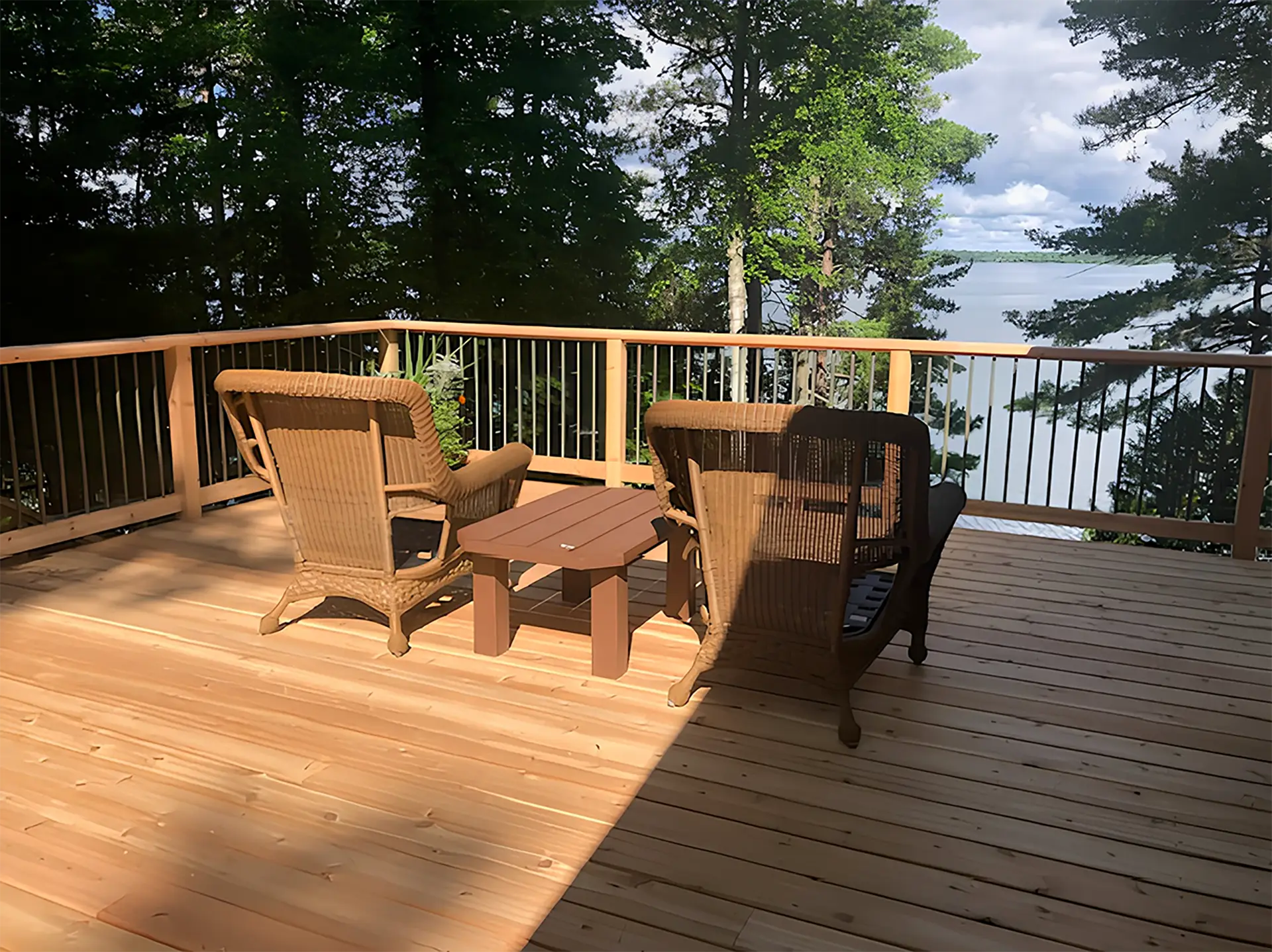 Your lake home deserves an outdoor space as beautiful as its surroundings. Browse our gallery of custom decks, railings, and outdoor living spaces designed to complement Minnesota’s lakeside retreats. Every project reflects our commitment to premium craftsmanship, timeless design, and seamless integration with the natural landscape.