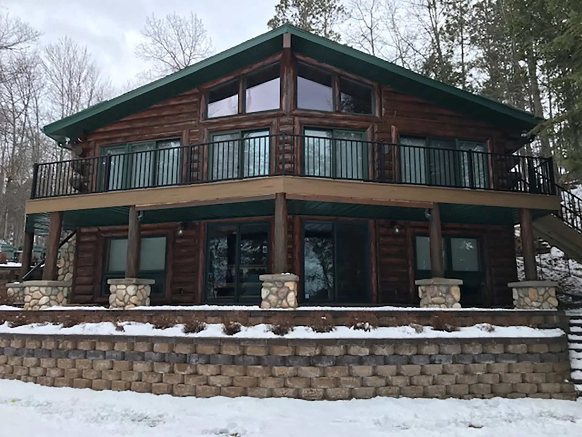 The homeowner wanted a low-maintenance deck that matched the natural style of their log cabin and maximized views of the lake. The goal was to create a space that was both functional and visually cohesive with the home’s exterior.
