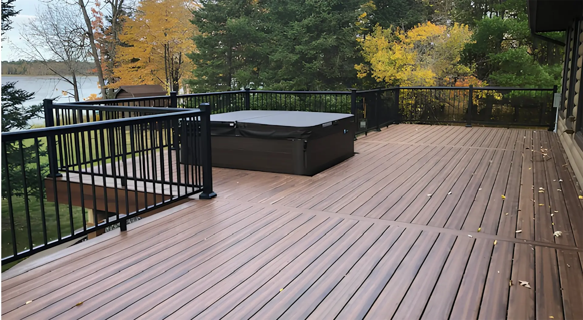 The finished deck is structurally sound and visually appealing. It offers a safe, low-maintenance space for outdoor living with an unobstructed view of the water.