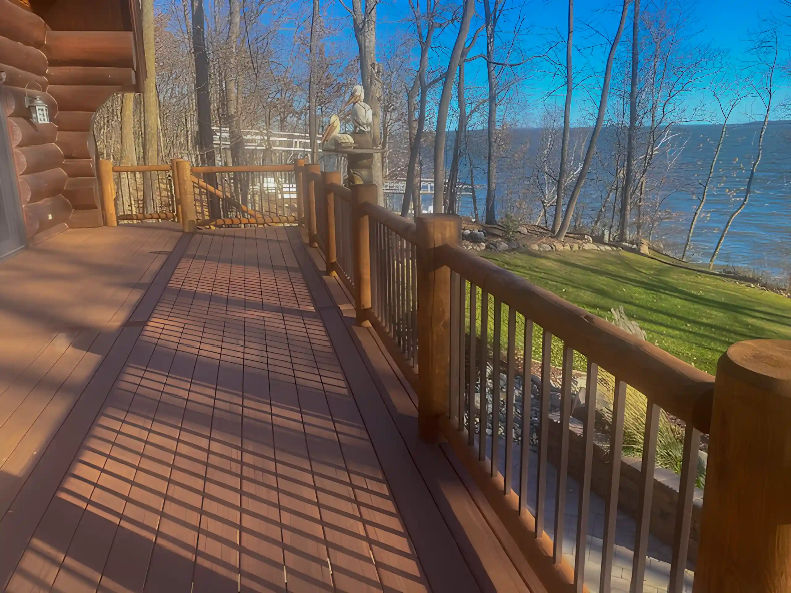 The homeowner wanted a durable, low-maintenance deck that would complement the rustic beauty of their lakeside log home. The design needed to provide ample space for entertaining while maximizing views of the water.